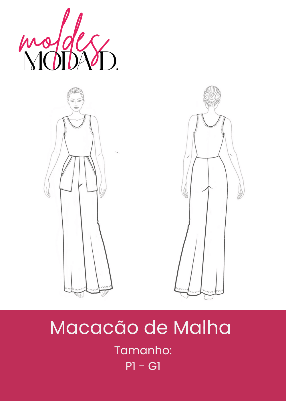 Crie um macacão de malha prático, confortável e com caimento impecável usando este molde digital completo! Ideal para quem busca uma peça versátil que pode transitar entre o casual e o moderno, o modelo é perfeito para produções descomplicadas, mas cheias de estilo.